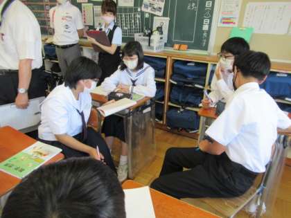 6月9日(水) 2年生数学 教育実習生による授業 公開日 2021/06/09 更新日 2021/06/09 できごと 6月9日(水) 教育実習も最終週に入り、今日は、管理職、数学担当、研修主任、2学年の先生など多くの先生方が参観する中、2年生数学の研究授業が行われました。 周到な授業準備をもとに、堂々とした態度で計画どおりに授業を進めていました。 とてもわかりやすく工夫された指導で、子どもたちもしっかり理解しているようでした。
