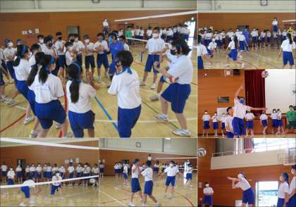 写真上は4組、下は5組の名場面です。決めて喜び合い、ミスしても「次、次!」と励まし合う姿が、どのクラスもとても爽やかでした。