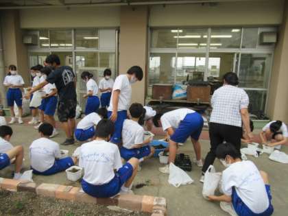 6月23日(水) 2年生技術の授業 公開日 2021/06/23 更新日 2021/06/23 できごと 2年生の技術では、以前の授業で種まきしたバジルの苗の植え替え作業に取り組んでいました。土や肥料、環境など植物の生育条件を学習してきた生徒たち。今後もしっかりと面倒を見て、香り良し、味良しのバジルに育てられるとよいですね。