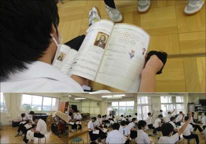 6月30日(水) 3年生音楽の授業 公開日 2021/06/30 更新日 2021/06/30 できごと 3年生音楽の授業の様子です。 授業の冒頭では、「古城」「卵のからをつけたひな鳥のバレエ」「キエフの大きな門」 の3曲を聴いて、グループで感想を共有し合っていました。 感染症予防対策をしながら、工夫をして音楽の授業を進めています。