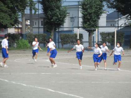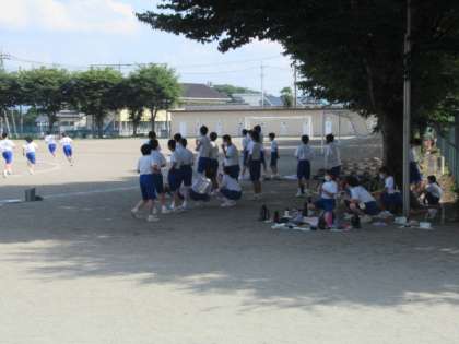 7月16日(金) 3年生保健体育の授業(2) 公開日 2021/07/16 更新日 2021/07/16 できごと 3年生は、暑さを感じる以上に気持ち良さそうに体を動かし、全力で走っています。待機中の生徒たちは、木陰で応援しています。体育の先生によると、木陰には涼やかな風が吹き、とても気持ちが良いそうです。熱中症や感染症に配慮しながら、生徒と先生で元気に運動に取り組む3年生たちでした。