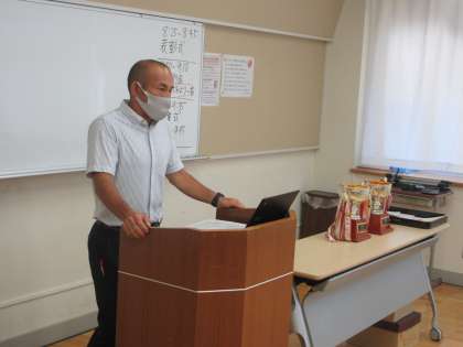 終業式の後、生徒指導、安全担当の先生から、40日間、安全安心の夏休みとなるよう生活の仕方等についてのお話がありました。