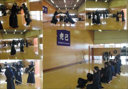 剣道部も、板の上で正座してあいさつをし、気合いの入ったかけ声とともに様々な稽古に真剣に取り組んでいました(写真下)。