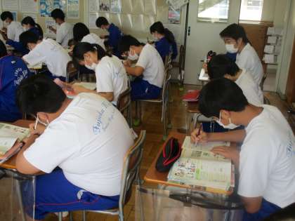 9月24日(金) 3年生社会科の授業 公開日 2021/09/24 更新日 2021/09/24 できごと 3年生社会科の授業の様子です。 「日本国憲法上で、私たちはどんな責任と義務を負っているのだろうか?」 自分達の生活している世の中を改めて振り返りながらまとめていました。