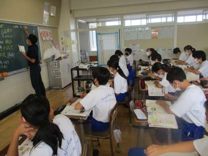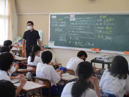 9月24日(金) 1年生社会科の授業 公開日 2021/09/24 更新日 2021/09/24 できごと 1年生社会科の授業の様子です。 「奈良時代の土地制度はどのような特徴があったのだろう」 いつものように、先生のテンポのよい話を興味深そうに聞きながら学習を進める姿がありました。