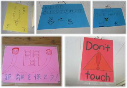 よく見てみると、それは2年生学年委員会の人たちが作ってくれた、新しい生活様式を意識した生活をみんなに実践してもらうためのポスターでした。