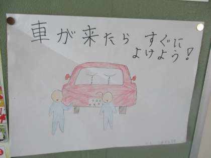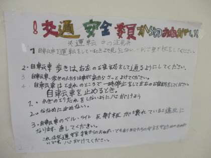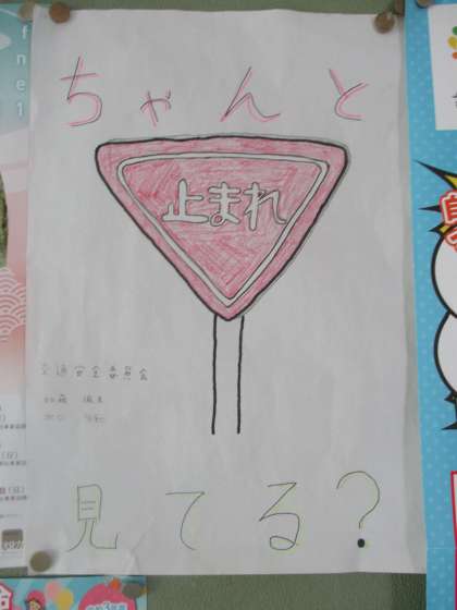 校内には交通安全委員会の皆さんが作成したポスターたくさん貼られています。