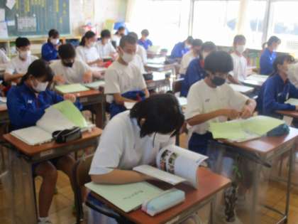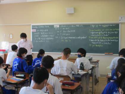 10月4日(月) 2年生英語の授業 公開日 2021/10/04 更新日 2021/10/04 できごと 中間テストが近づいてきました。 授業の最後に行うはまとめ・振り返りのカードをもとに、しっかり復習をしてテストに臨んでくれることでしょう。