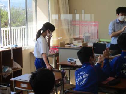 何人かの人に2人組になって、みんなの前で表現してしてもらいました。