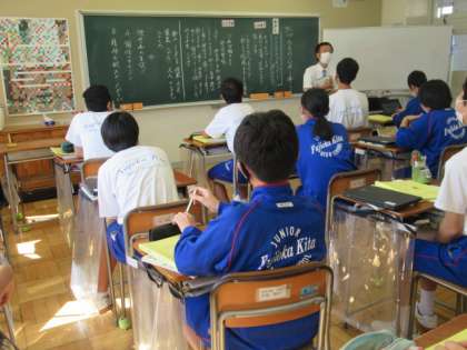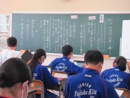 3年生の国語では、ものごとを多角的に分析して書くことに取り組んでいます。今日の授業ではクラスのキャッチコピーを考えることをめあてに、まず、キャッチコピーとは何かを振り返り、クラスの特長は何かを出し合いました。そして、PC端末の協働学習支援ソフトを活用して互いの考えを見合い、評価し合いました。この学習支援ソフトは、限られた時間の中で全員の考えを知ることができること、それに対して意見・感想を伝えられることができます。総じて評価が高かった文や言葉をもとに、全員で話し合ってクラスにぴったりのキャッチコピーを作ることができました。