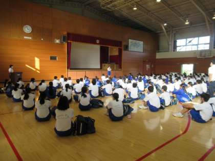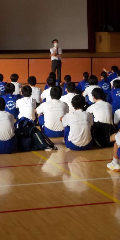 10月11日(月) 3年生 修学旅行出発式(1) 公開日 2021/10/11 更新日 2021/10/11 できごと いよいよ明日は、3年生が修学旅行に出掛けます。今日は、その出発式を行いました。修学旅行実行委員長、3学年主任の話を、3年生たちは今日も真剣に聞いています。