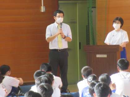 校長先生からは、最上級生として北中のためにいつも全力を尽くして頑張っている3年生たちへの労いと感謝の言葉がありました。そして、感染症防止に係り、修学旅行の実施までに紆余曲折ありながらも、決まったことを前向きに捉えて明日を迎える3年生たちへ熱いエールがありました。行き先でのマナーや感染症対策など、これまでの学習や生活の成果を発揮できるところも多くあり、まさに修学旅行であるという話を頷いて聞く3年生たちの明日が、素晴らしい一日となりますように。