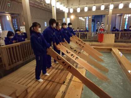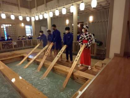 みんなで湯もみ体験をしました。短時間でも疲れてしまいました。みんなは上手にできていました!