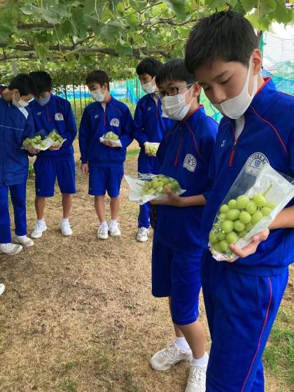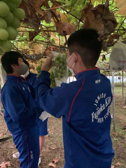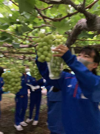 沼田コースの最後は、シャインマスカット狩りです。大きいのを狙っています。