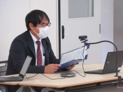今年度の学校保健委員会のテーマは、「満点朝ご飯作りから健康生活を考えよう」です。開会のあいさつでは校長先生から、生徒とPTAの保健委員会が連携した本取組が、学校教育目標「たくましく」やSDGsとの関連を図った非常に意義深いものであることなどが話されました。