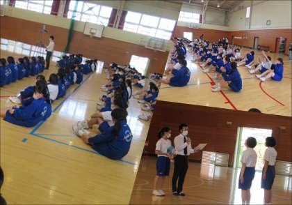 3年生は、とにかく皆が楽しんでいる、このクラスの仲間と表現することに喜びを感じている、だからこそ見ている側も楽しくなる、そんなダンスでした。演出の工夫や意外性なども併せ、さすがは3年生でした。審査結果発表までのわずかな時間には、3年生全員と先生方で元気いっぱいに全校ダンスを踊りました。