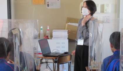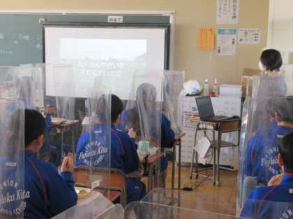 10月18日(月) 栄養士さんの給食時訪問 公開日 2021/10/18 更新日 2021/10/18 できごと 本日より学校給食センターより栄養士さんが来校し、2年生各クラスで栄養に関わる話をしてくださいます。給食の準備ができたところで、今日は2年1組の生徒たちに話をしてくださいました。給食で使われる野菜を、地元の藤岡北高校さんや農家さんも育てていることや、栄養価や鮮度の高さなど地産地消の良さについて、丁寧に説明してくださいました。栄養士さんには、今後もお世話になります。