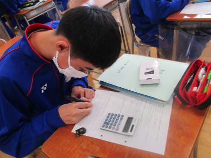 この関係は関数と言えるのか?その解答の根拠を明らかにしながら、関数について理解を深めていました。先生と生徒、生徒同士の関係のよさが十分に感じとれる授業でした。