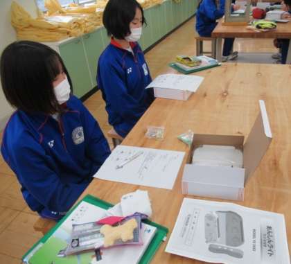 2年生の技術では、ラジオ付きライトの製作に入っています。全ての部品が手許に揃ったところで、各部品の名称や役割等を確認しました。ライトが点灯し、ラジオも聞くことができるようにするための配線の仕方についても、抵抗器の配置について学びながら理解を深めていました。ハンダごてなどの用具も活用しての製作ということで、生徒の期待感は高まっています。