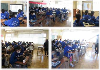 立候補者と応援者は端末を持ち帰り、各自家庭で演説を事前録画してきました。どの生徒の演説も、北中の良き伝統を引き継ぎ、より良くしていくために全力で頑張る決意にあふれていました。クラスでスクリーンを見つめる生徒たちも、じっくりと耳を傾け聞いていました。