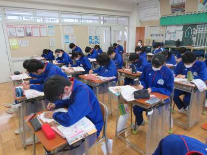 説明を聞く、自分で考える、交流する、板書を書く、覚える等、メリハリのある授業展開で生徒は50分しっかりと集中していました。