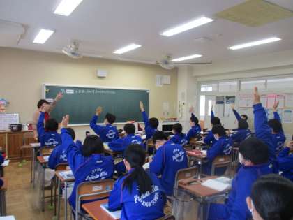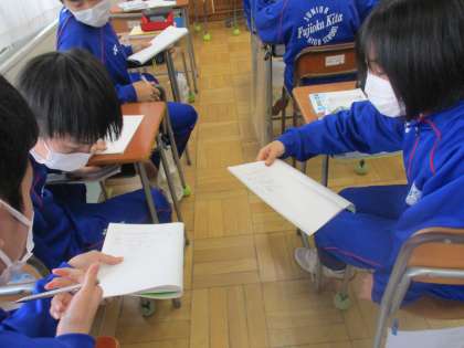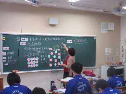 生徒との信頼関係の上に、一人一人の考えや意見(声)を大切にしながら授業を進めていました。1年生矢2年生の頃に先生が話したこと内容や言葉なども、生徒たちはよく覚えていて、それをもとにしながら、先生作のモデル図を使用し先生の話と生徒の気づきで学習を進めていました。