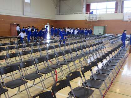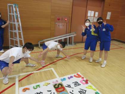 10月26日(火)北斗祭準備その1 公開日 2021/10/26 更新日 2021/10/26 できごと 明日の北斗祭に向けた準備が15:00より体育館で始まりました。これまで生徒会本部を中心に文化祭実行委員や各クラスで作成したモザイクアートや学級旗を飾りました。 生徒は明日の本番を楽しみに、生き生きと準備を進めました。準備の一部をちょこっとだけお見せします。