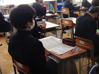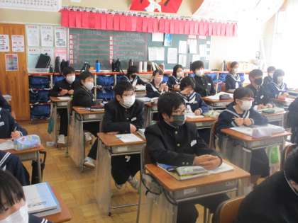 11月4日(木) 1年生社会科の授業 公開日 2021/11/04 更新日 2021/11/04 できごと 1年生社会科の授業の様子です。 今日は、韓国の生活、文化、経済について、様々な資料等から学びました。