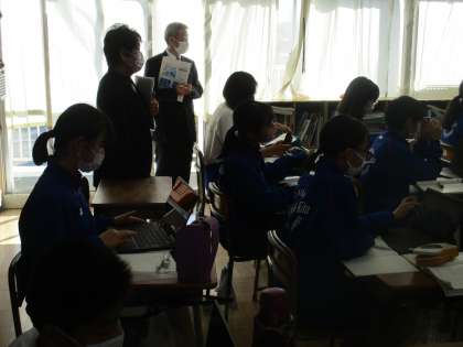 11月5日(金) 藤岡市教育委員訪問 公開日 2021/11/06 更新日 2021/11/06 できごと 11月5日(金)午後、藤岡市の教育委員さんが来校され、授業スタンダードを踏まえた授業、特に一人1台端末の活用を取り入れた授業の様子などを参観していただきました。その後の協議では、授業でのタブレット活用について、資料をつかってお話をさせていただきました。 委員さんからは、端末がより有効な活用となるようご示唆をいただきました。