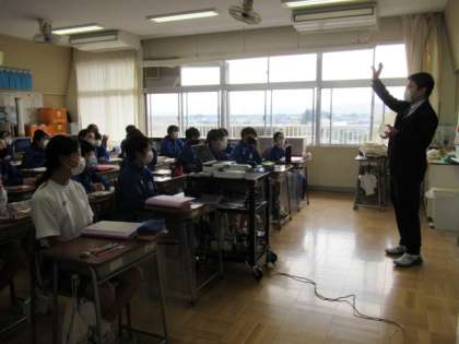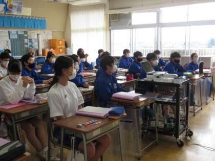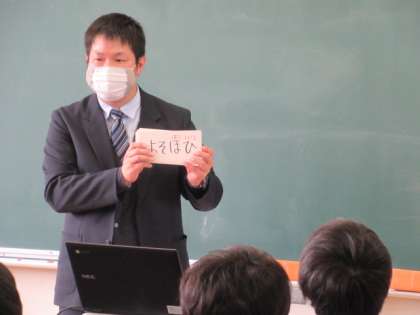 11月8日(月) 1年生国語の授業 公開日 2021/11/08 更新日 2021/11/08 できごと 1年生の国語では、「蓬莱の玉の枝」を教材に古典の学習を進めています。授業のはじめには、“古典単語”の復習に取り組みます。先生が“いと”というカードを提示すると、生徒は“とても”と現代語訳を答えます。毎日のこうした積み重ねにより、古典の文章の読み取りがスムーズになり、読み味わうことに繋がっていくと思います。