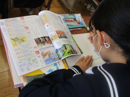 11月11日(木) 1年生国語の授業 公開日 2021/11/12 更新日 2021/11/12 できごと 11月11日(木)1年生国語の授業の様子です。 今日は「平家物語」 祇園精舎の鐘の声 諸行無常の響きあり・・・ 前回の授業で習った冒頭部分を振り返ってから、今日の授業に入っていきました。 いよいよ本文を読んでいきます。