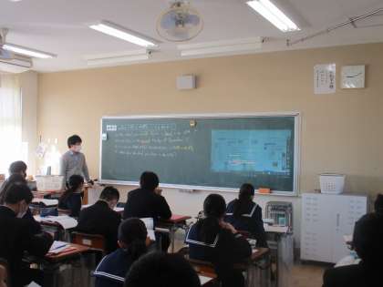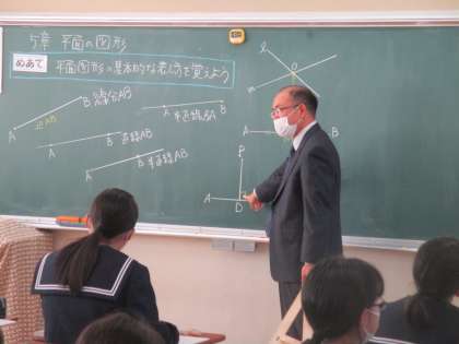写真中は数学「平面図形の基本的な考え方」について学びました。