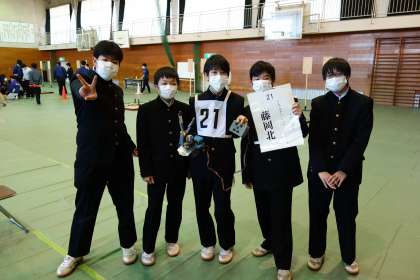競技は、制限時間3分内にいかに正確にミッションをこなすかにかかっています。各チームとも競技に2回チャレンジし、合計のチーム得点を競います。本校ロボコン部は、3チームとも全て制限時間内に各ミッションをクリアすることができました。アーチ型の橋も無事に上り下りし、ペットボトルを運搬したりボールを台に乗せたりする課題を慎重かつ正確にこなすことができました。ひとえに、日頃の研究と練習の積み重ね、チームワークの賜物です。