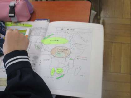 12月10日(金)1年生社会科の授業 公開日 2021/12/10 更新日 2021/12/10 できごと 1年生社会科の授業の様子です。 今日は、これまでに学習したの「アフリカが抱えている問題」を思い出しながら、そのことをもとに、「アフリカの気候の特色について」について考えました。 アフリカの抱えている課題と気候には何か関係があるのでしょうか。