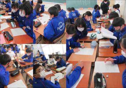 12月10日(金) 人権強化週間 ネットリテラシー学活2 公開日 2021/12/10 更新日 2021/12/10 できごと 各クラスの学級役員が司会を行い、ネームプレートを使い、発表者の意見を黒板に書き可視化しました。その意見を受け、各班で話し合いを行い、行動目標を考えました。 今後、各クラスで決めたネットリテラシーについての行動目標を玄関等に掲示し、啓発していきます。