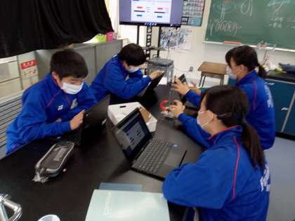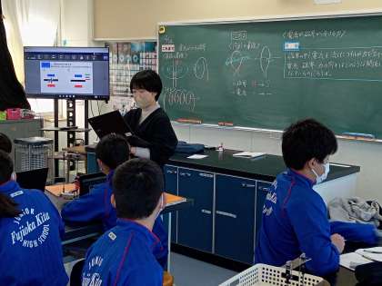 12月14日(火)2年生理科の授業 公開日 2021/12/14 更新日 2021/12/14 できごと 2年生理科の授業の様子です。 今日の学習は、「電流が磁界から受ける力」についてです。 課題(めあて)は、「磁界の中で電流を流したコイルが力を受けるとき、電流、磁界、力の向きはどんな関係になっているのだろう?」 PCに映し出されたモデル図を活用して実験を進めていました。 上手に整理できるとわかり易いですね。