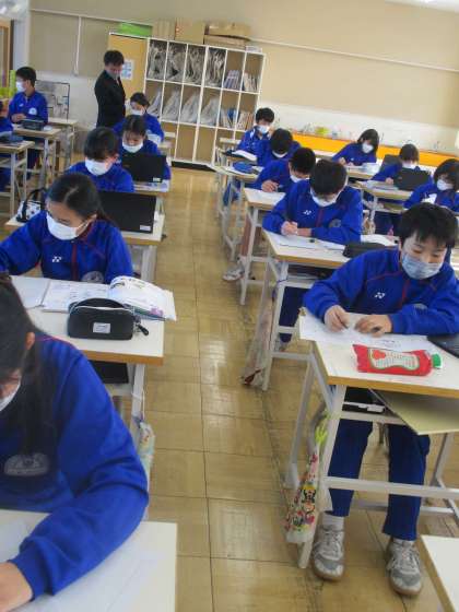 12月14日(火)1年生美術の授業 公開日 2021/12/14 更新日 2021/12/14 できごと 1年生美術の授業の様子です。 かきたいものをモチーフにしてドアプレートとしての役割を考えながら、下絵を描きました。できた人は、文字もレタリングしながら下書きを進めていました。