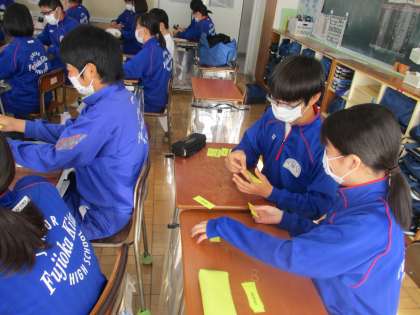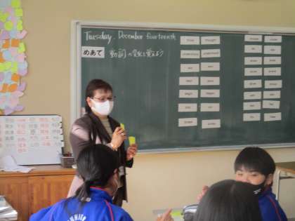 12月14日(火)2年生英語の授業 公開日 2021/12/14 更新日 2021/12/14 できごと 2年生英語の授業の様子です。 今日は、「動詞の変化を覚えよう」というテーマでALTが用意したカードゲームを使って、楽しみながら学習を進めていました。 ゲームは、たとえ勉強のためのゲームでも楽しいですよね。 2人組でカードをいち早く取り合いながら、盛り上がっていました。 ポイントとなる動詞の変化は覚えられたでしょうか。