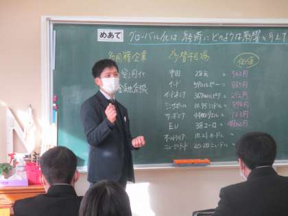 12月16日(木) 3年生社会科の授業 公開日 2021/12/16 更新日 2021/12/16 できごと 3年生社会科の授業の様子です。 今日のめあては「グローバル化は経済にどのような影響を与えているのだろう。」 為替相場の話から、様々な国の通貨の価値について学びました。 先生が1ユーロと1000ルピアの硬貨を用意してくれました。 生徒は実際に手に取り、重さや手触り、見た目等の印象から、硬貨の価値について考えるヒントとしていました。