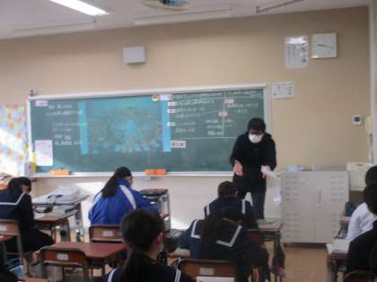 12月17日(金)1年生社会科の授業 公開日 2021/12/17 更新日 2021/12/17 できごと 1年生社会科の授業の様子です。 これまで学んできた、アフリカの課題。その課題の要因についても詳しく調べてきました。今日は「そのアフリカの課題に対して、世界はどう取り組んでいるのだろうか。」資料をもとに考えました。