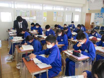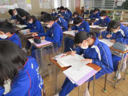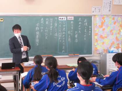 2月4日(金) 2年生国語の授業 公開日 2022/02/06 更新日 2022/02/06 できごと 2年生の国語では太宰治の「走れメロス」を学習しています。力作だけに授業する先生もたくさんの工夫をしながら授業を進めています。今回はシラーの「人質」をつなぎ教材として活用し、生徒は「走れメロス」と「人質」を読み比べ、人物設定や情景描写等を視点にその違いを見つけていました。