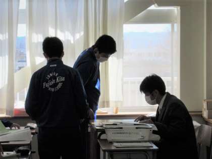 3年生の教室では、受検(受験)計画に則り、入学願書などの準備を進めていました。「受検(受験)は団体戦」を合い言葉に、3年生は授業にも入試への取組にも、いつも皆で真剣に臨んでいます。
