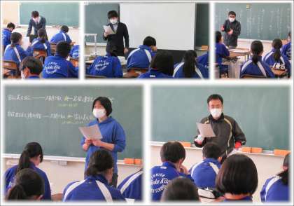 3月15日に予定している東毛校外学習に向けて、1年生は総合的な学習の時間を中心に着々と準備を進めて来ています。見学場所についての調べ学習も済み、今日は、学年委員会が話し合った校外学習の約束事や持ち物等についての提案や意見交換、先生からの説明がありました。どのクラスでも、生徒たちは目を輝かせて取り組んでいます。楽しみにしている校外学習が実施できる状況となることを、願ってやみません。
