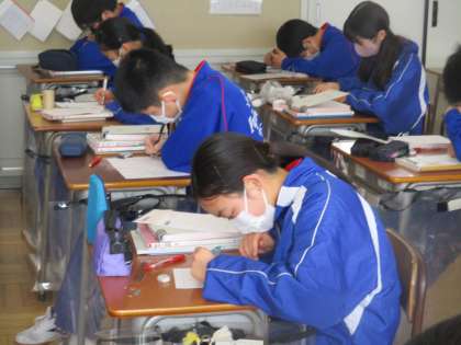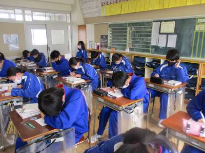 3月8日(火)1年生数学の授業 公開日 2022/03/08 更新日 2022/03/08 できごと 1年生数学の授業の様子です。 1年生の数学の授業も終盤を迎えた今日は、問題プリント「レスキュー」にどんどんチャレンジしていました。 机の上に置かれた「レスキュー」のファイルは、もうこんなに厚くなりました。 1年間の学びの軌跡ですね。