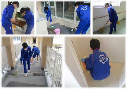 3月8日(火) 3年生「愛校作業」2 公開日 2022/03/08 更新日 2022/03/08 できごと 「無言膝付き清掃」を徹底している3年生。 自分から汚れや乱れに気づき、進んできれいにしてくれました。 普段なかなかできていない、シャワー室やトイレの便器、床の汚れ落としなどは、もちろん、普段拭いている廊下や階段、教室の床なども一層力を入れている様子が見られました。誰一人手を抜かず、一生懸命作業をするさすがの姿です。 おかげで、学校中がピカピカになりました。ありがとう3年生。