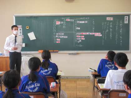 4月13日(水) 1年生道徳の授業 公開日 2022/04/13 更新日 2022/04/13 できごと 本日、1年生の5校時の授業は道徳でした。「これまで」小学校で学んできた道徳について振り返り、先生のお話や教科書から、「このあと」自分のどんな心を道徳の授業を通して高めたいかを自己決定しました。頭脳と心と体が大きく伸びるのが中学生です。これから道徳の授業を通して自分自身の生き方について、しっかりと学んでいきます。
