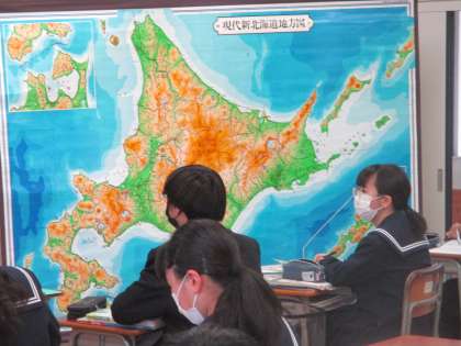 4月14日(木) 3年生社会科の授業 公開日 2022/04/14 更新日 2022/04/14 できごと 3年生社会科の授業の様子です。 地理「北海道地方」についての学習しています。まずは歴史に着目してどのように発展したのかをみんなで考えました。