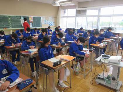 4月15日(金) 2年生理科の授業 公開日 2022/04/15 更新日 2022/04/15 できごと 2年生の理科では化学変化について学習しました。これまでの実験結果を振り返り、酸化銀を分解すると銀と酸素に分かれたことから今日の授業では「熱分解」という言葉を新たに学びました。