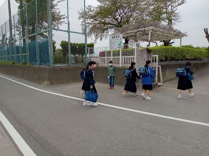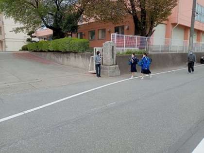 4月19日(月)朝、正門では、今年も更生保護女性会のメンバーの皆さんが交代であいさつ運動に来てくださっています。