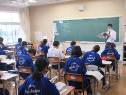 4月18日(月) 1年生社会の授業 公開日 2022/04/18 更新日 2022/04/18 できごと 1年生の社会の授業では「世界の位置をあらわすにはどのような方法があるか」のめあてのもと、地図帳をひらき、「これまで」聞いたことのある国を探しました。生徒は先生が国名を伝えると地図帳からすぐに国を探し出し、「先生、ありました!」と言いながら挙手をしていました。1年生のやる気を感じました。